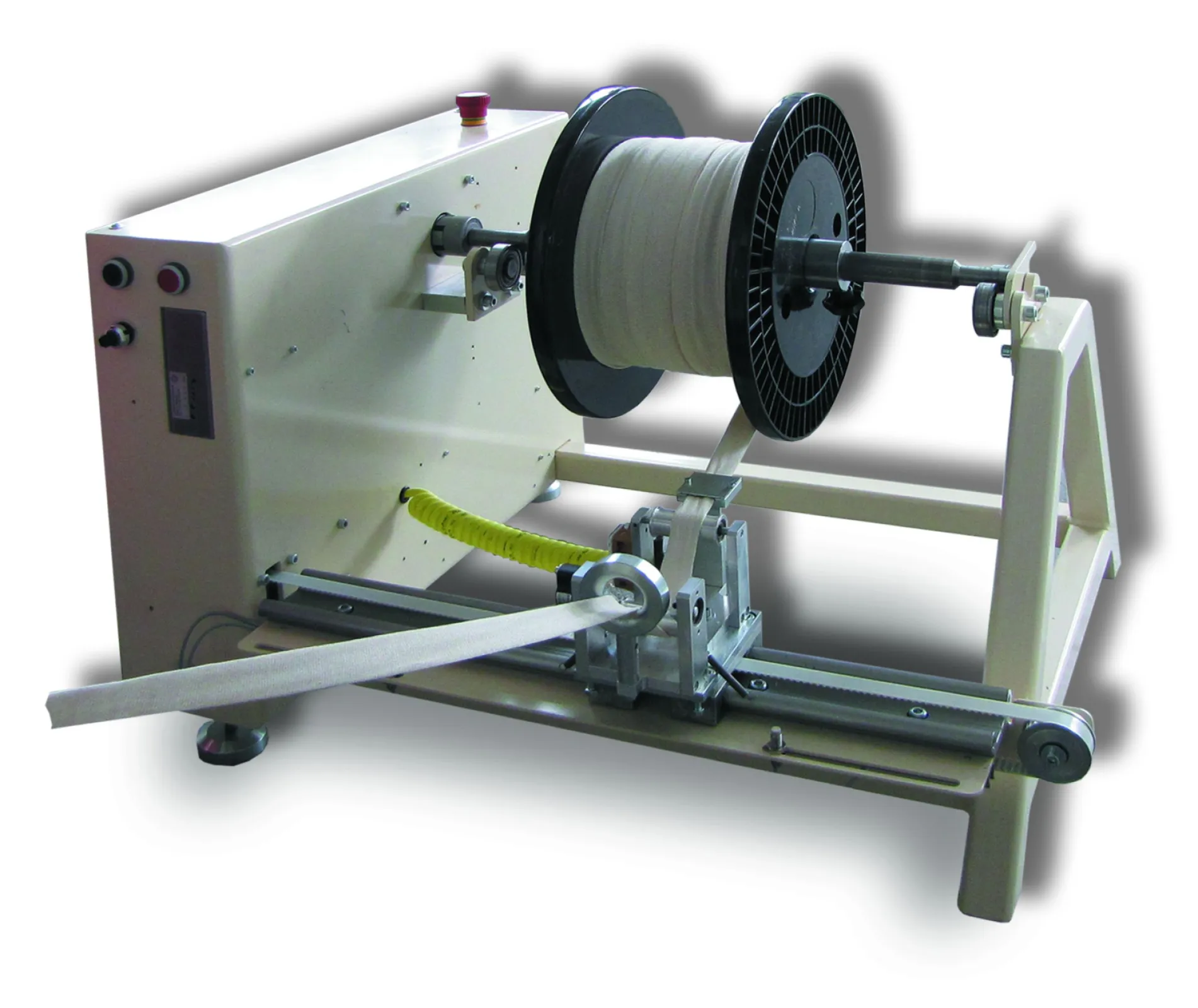 Winder for coil winding, with or without side-board. Can be used for tapes, ribbons, ropes, hoses of all kinds.